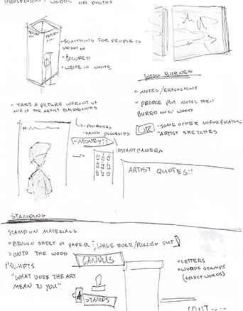 The cubes offer the viewers a chance to interact with the exhibition. These blocks can stretch down a main lobby or corridors giving viewers a place to sit to enjoy the work. As the viewers walk in one direction entering the exhibit space the blocks read "kamoinge" while on the other side the blocks read "workshop".